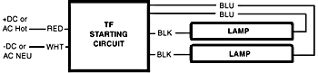 Ballasts for AC or DC input are available. The voltages can vary over a